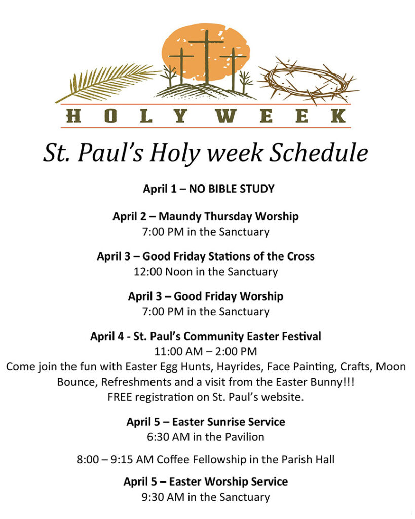 Join us for St. Paul’s Easter Festival on Saturday, April 4th, 11 am to 2 pm.