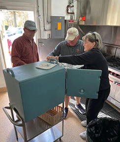 Many St. Paul's volunteers supported the Saturday, October 26, 2024 Grassroots Day Resource Center (DRC) meal: Carole Manges purchased food needed for the meal; Judy Hewitt (ServSafe Kitchen Manager), Sara Berschet, John Bell, and Russ Werner prepared the meal; and Pastor Joe and Carol Lettrich, Janey Jew, and Erik Domaas delivered and served the meal. The menu included chicken and cheese enchiladas, cilantro lime rice, black beans, tossed salad, apples, clementines, cookies, iced tea, and lemonade. The meal was very well received and fed approximately fifty-five people at Grassroots DRC in Jessup, MD. The leftover food was taken to Grassroots Shelter in Columbia, MD, enough to feed an additional fifty-five people.