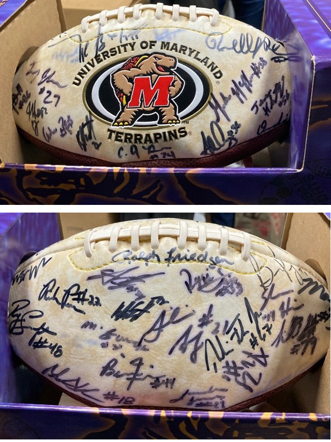 These four sports memorabilia items were owned by Dr. J. Lee Majeskie, an internationally renowned cattle judge and Professor Emeritus and Extension Specialist at the University of Maryland. Dr. Majeskie was an “enthusiastic Terrapin Club member” (per his 2008 obituary) who traveled to many sporting events including the 2002 Orange Bowl (along with Charles Iager) and the 2002 NCAA Championship in Atlanta.